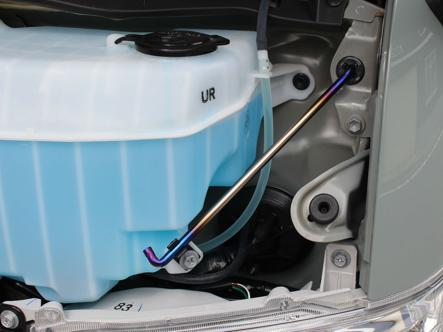 Titanium Engine Hood Bar トヨタ ハイエース200系専用のチタン製エンジンフードバー。開けた瞬間に違いが伝わる、エンジンルームのためのドレスアップアイテムです。チタン素材ならではの質感が、さりげなくも確かな存在感を放ちます。 適合車種:トヨタ ハイエース(200系) 全長:約220mm 重量:約45g
