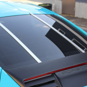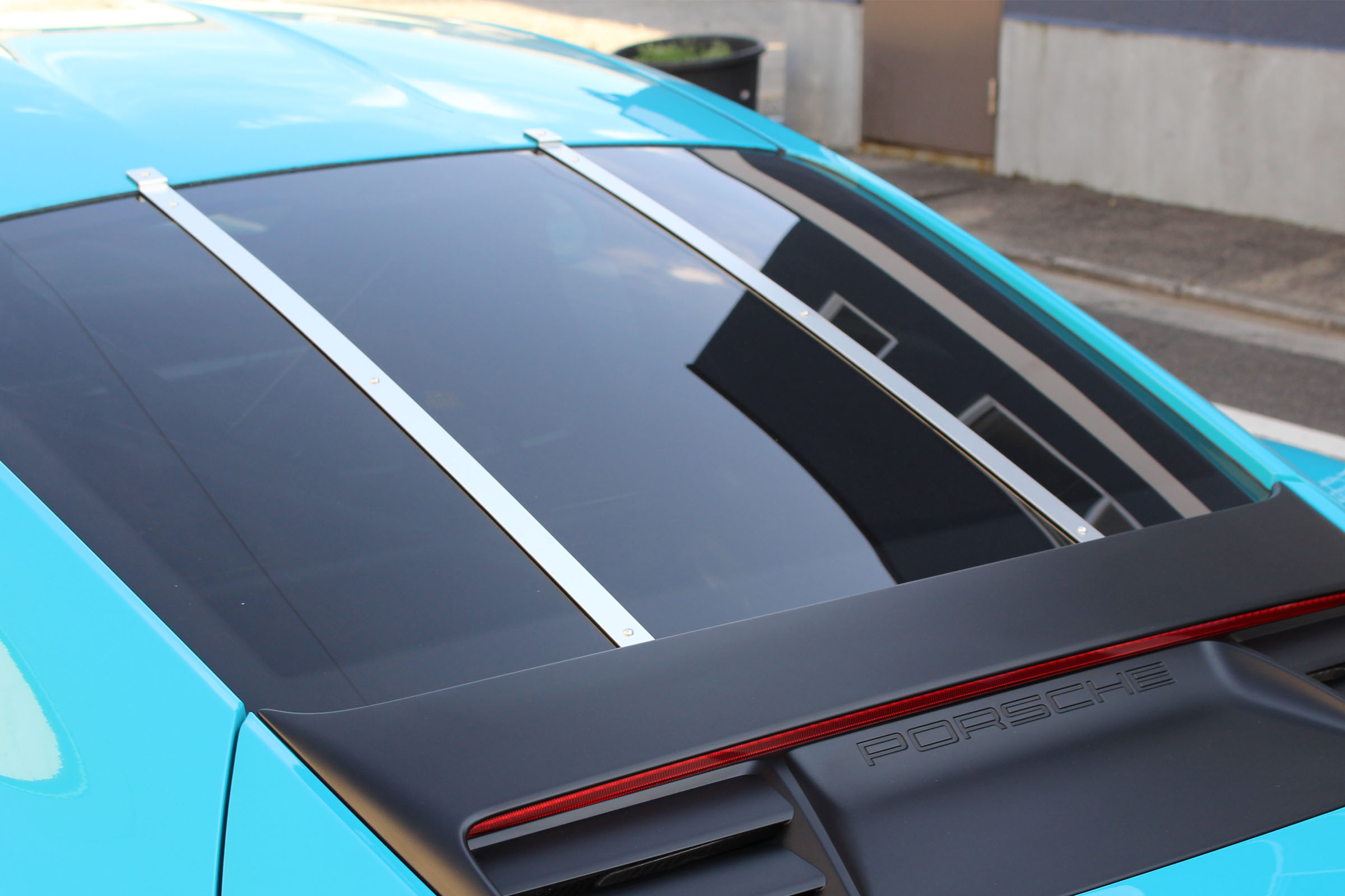Rear Glass Bar ポルシェ 911(type991.2)専用に設計されたリアウイング撤去用の目隠しパネルです。ウイングを取り外した際のサイド部分をカバーし、純正ラインを壊すことなく、ダックテールを思わせる独特のフォルムへと変化させます。クラシック911を彷彿とさせるエレガントな佇まいと、現行モデルが持つモダンな美しさが融合し、リアビューが一段と引き締まるアイテムです。 材質:アルミ(シルバーアルマイト仕上げ/ブラックアルマイト仕上げ)